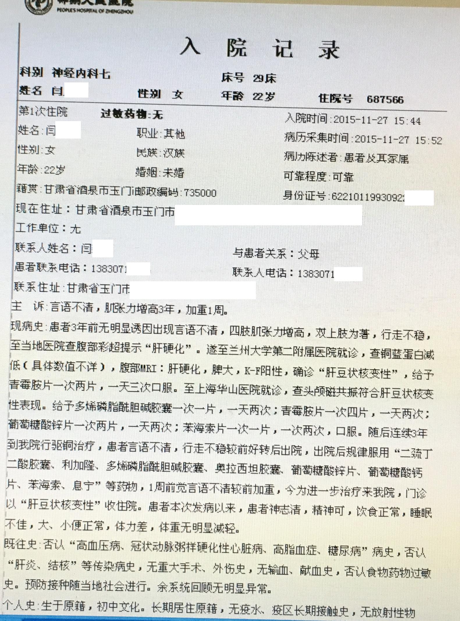 河南大学附属郑州颐和医院肝豆状核变性诊疗中心,省、市医保定点医院,拥有国家卫生部、省卫生厅多次达标的重点生化试验室及分子生物学实验室,开展了肝脏储备功能定量分析、肝脏穿刺活检、肾脏穿刺活检、骨髓采集、血清铜、铜蓝蛋白、铜氧化酶、24小时尿铜等项目检测及基因诊断。